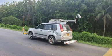 Determinación de perfil e índice de regularidad con perfilómetros láser de alto rendimiento · Determinación de profundidad de textura con equipos de tecnología láser y métodos volumétricos manuales · Medición de deflexiones con deflectómetro de impacto con 14 geófonos o con viga Benkelman · Cámara de alta resolución para inventarios viales · Medición de ahuellamiento mediante determinación de perfil transversal TPL · Medición de fricción superficial.
